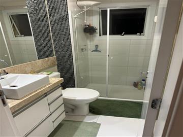 Banheiro social com planejados e box blindex